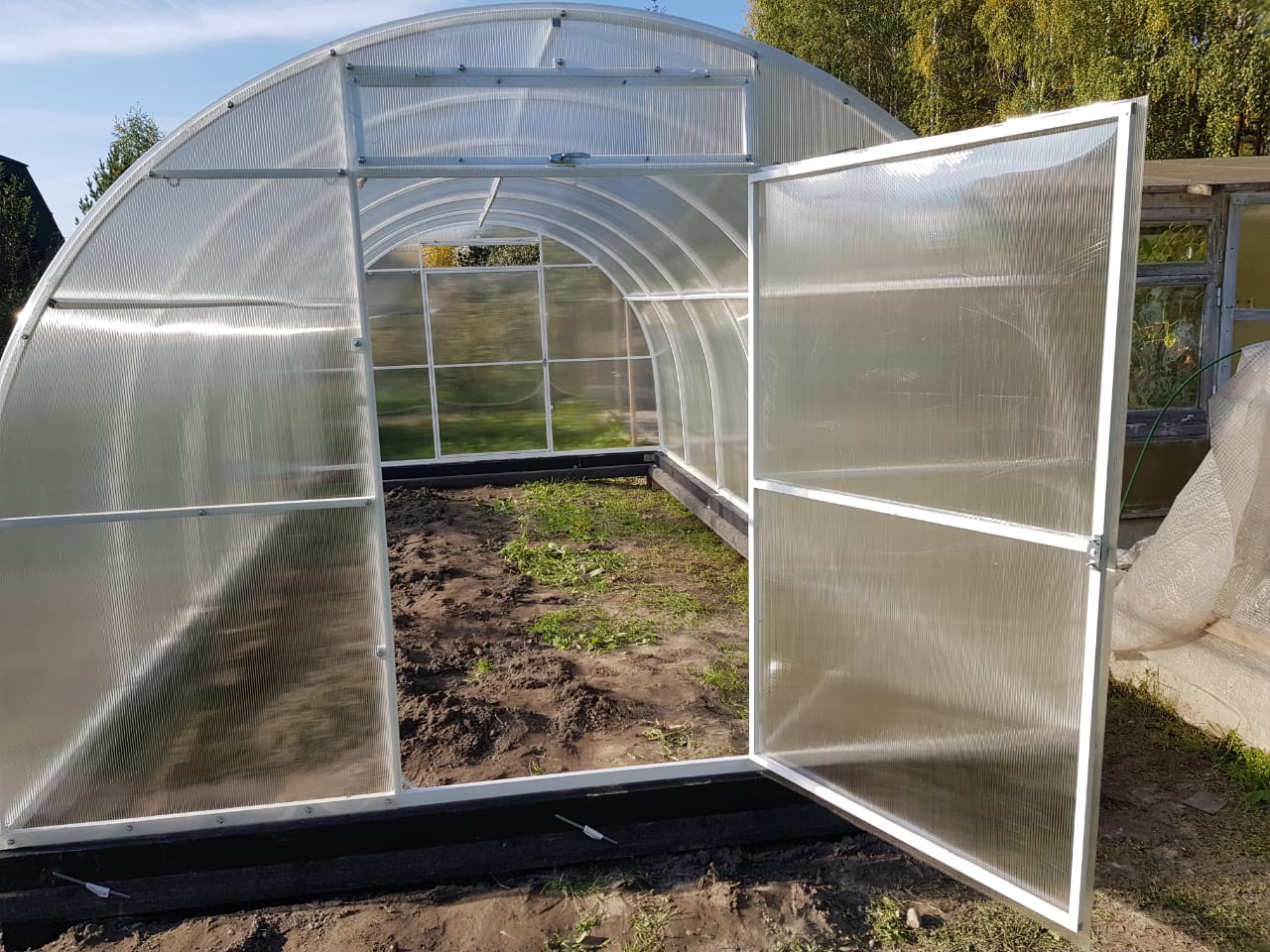 Дуги каркаса с шагом 0,67 метр. Две двери, две форточки.