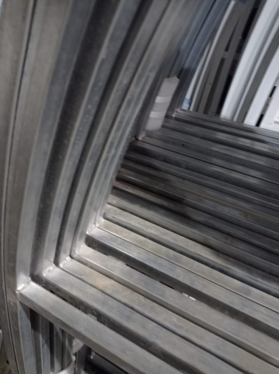 Дуги каркаса с шагом 0,67 метр. Две двери, две форточки.