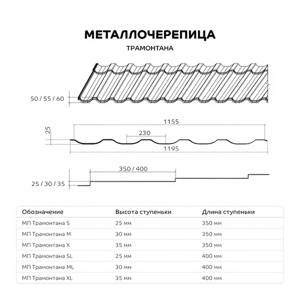 Новый профиль металлочерепицы Трамонтана не случайно назван в честь одноимённого ледяного и сокрушительного северного ветра. Такой профиль устойчив к ураганным ветрам и прекрасно подходит для строительства в субтропиках, в прибрежных районах с муссонами и даже на полярных территориях. Не боится Трамонтана и влажности — улучшенная форма бокового замка с усиленным капиллярным жёлобом гарантирует герметичность кровли. Оригинальная форма профиля — с плоской верхней линией — не только привлекает внимание к вашей крыше, но и обеспечивает дополнительную жёсткость кровельных листов. Такую металлочерепицу сложнее повредить при перевозке и установке. Нижняя часть металлочерепицы обрезается по форме волны, благодаря чему ваш карниз выглядит идеально. Новый профиль металлочерепицы производится на самом современном оборудовании, что гарантирует отличные характеристики изделия. В сочетании с полимерным покрытием вы приобретаете надёжную кровлю со сроком службы более 50 лет *.